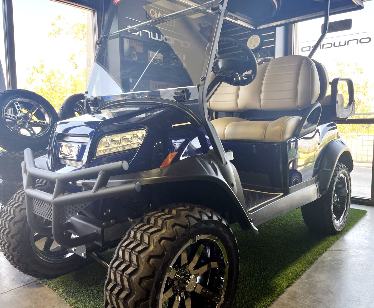 In our Anthem, NV Dealership we are featuring a 2023 4-Passenger Metllic Blue Onyx Club Car Onward with New Trojan Batteries, Lights, and Much More.